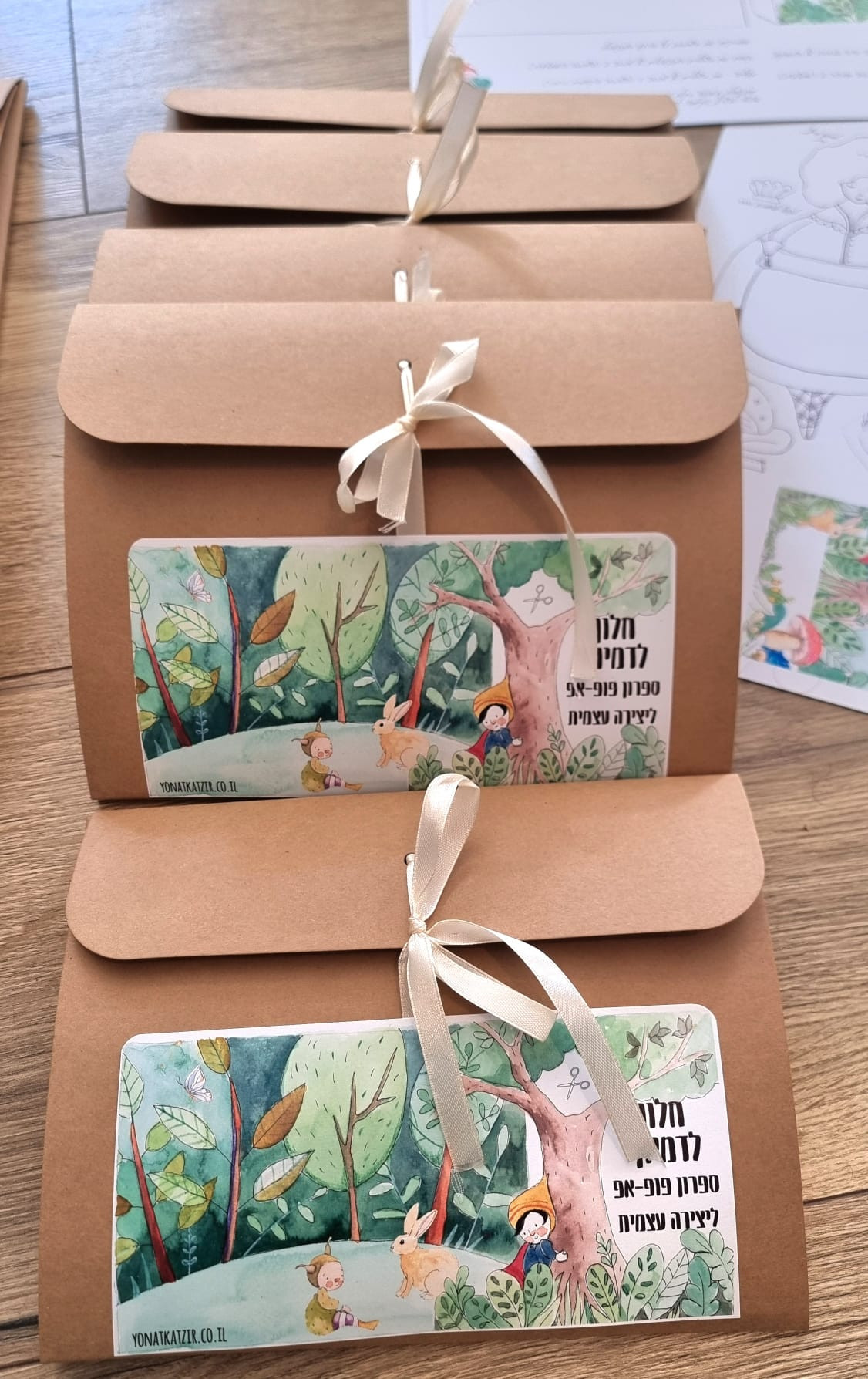 ערכה ליצירת ספרון פופ-אפ קטן ומתקפל, הבנוי מ 3 שכבות של איורים שניתן להציץ ולגלות בו עולם קטן שכולו קסם.