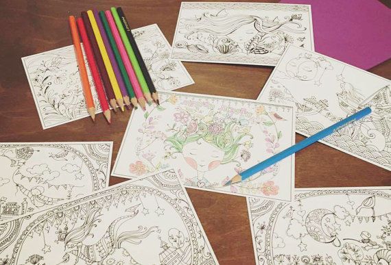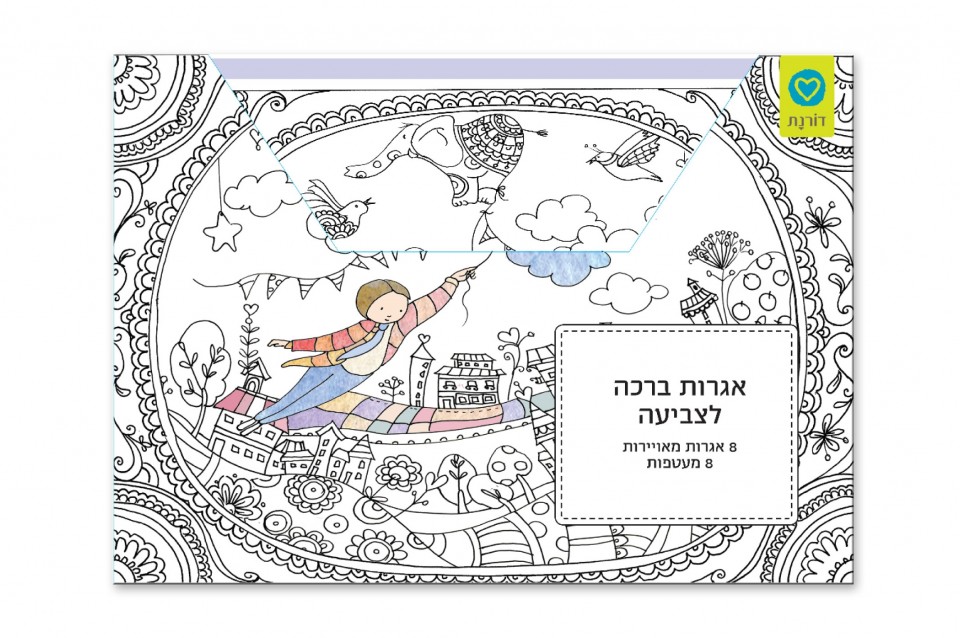 הסט כולל 8 כרטיסי ברכה באיורים שונים בצבע שחור לבן, המיועדים לצביעה.